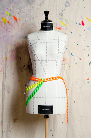 When developing the collection, Zaid asked his grandparents and family members to write letters to him, imparting some of their wisdom to help during these troubling times. Words and messages from these letters were then carried into the fashion pieces as Zaid shares them with the world. The BIC inspired collection also features a set of colorful and retro inspired accessories, with fluorescent chains, spike orange and blue earrings and traditional hats, “tarboosh”, with a twist of color and creativity.