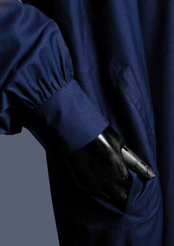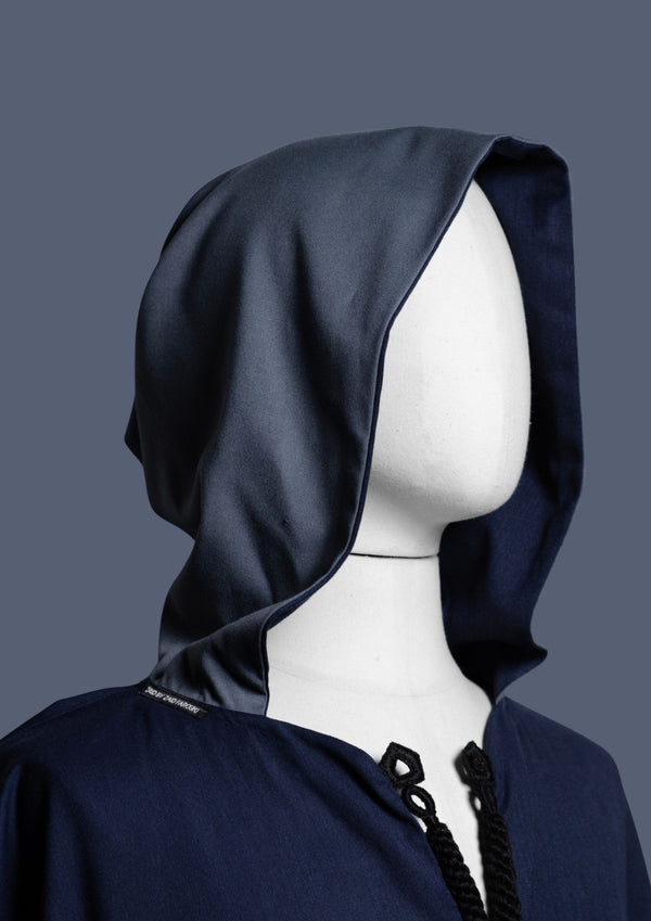 Najd is defined by strength and proportion. Rendered in a deep navy tone, the silhouette balances structure with movement through a layered front and clean, elongated lines. The dual-tone hood...